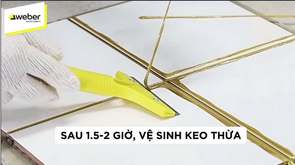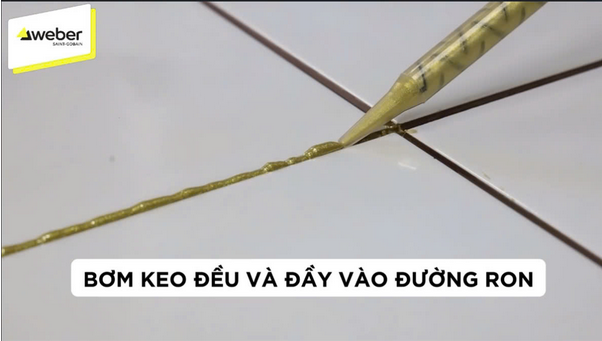 - Khi sờ tay vào mạch, thấy keo khô mềm như silicon, thì có thể bóc phần rìa – keo thừa ra. Lúc này keo mềm, có thể dùng tay bóc hoặc dùng dao sủi ra.