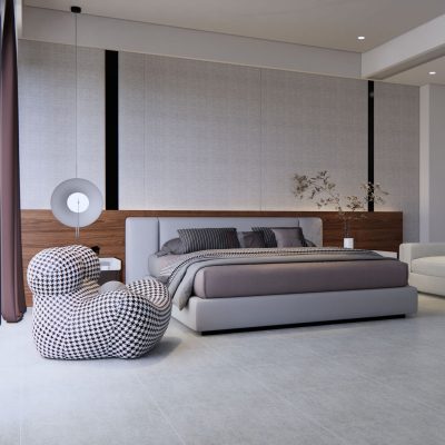 Tip: Có thể kết hợp thêm gỗ hoặc thảm lông nhỏ màu trung tính giúp phòng ngủ thêm phần ấm cúng, riêng tư.
